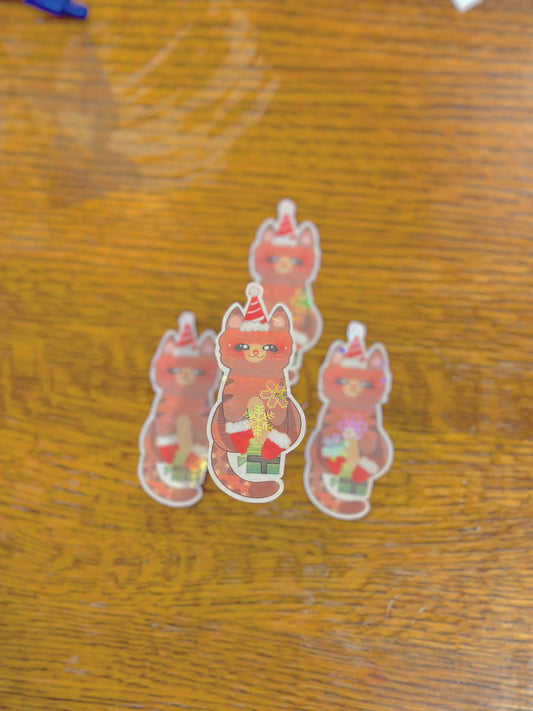 Cute & Kawaii Holographic Christmas themed Cat Sticker