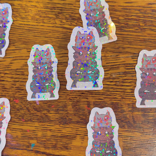Cute & Adorable Stacked Kittens Holographic Cat Themed Sticker