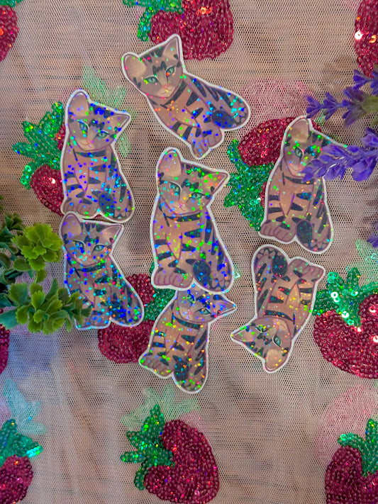 Cute Kawaii Handmade Holographic Long Cat Stickers