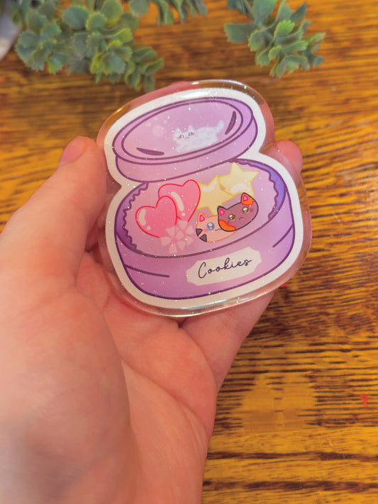 Cute Cookie Jar Cat Themed Glitter Fridge Magnet