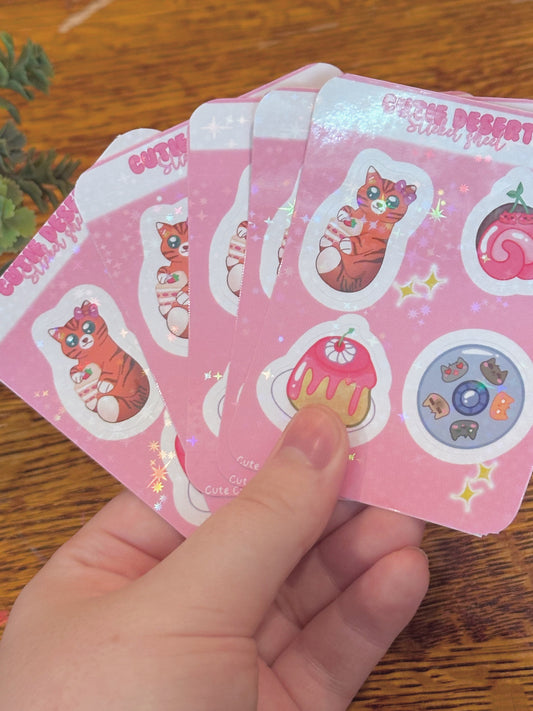 Mini ‘Cutie Desserts’ Holographic Easy Peel Cat Themed Sticker Sheet