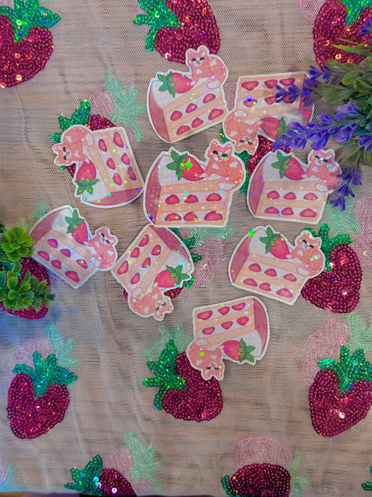 Cute & kawaii strawberry shortcake kitty holographic sticker | handmade!