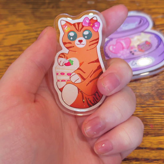 Cute Strawberry Shortcake Cat Themed Glitter Fridge Magnet