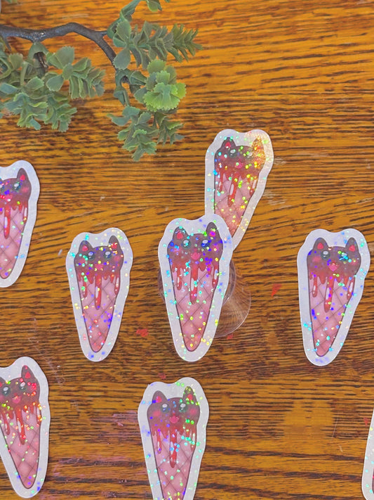 Cute Yummy Melting Holographic Ice Cream Cat Sticker