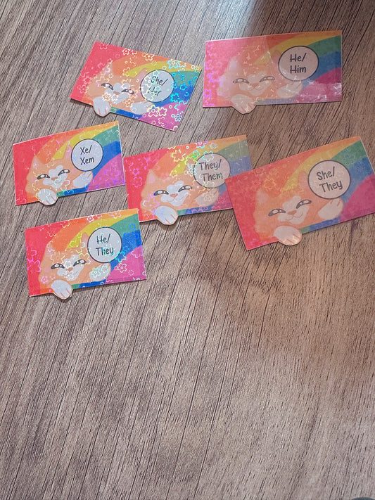 Cute Holographic Kitty Pronoun Sticker / Pride Stickers🏳️🌈🏳️⚧️
