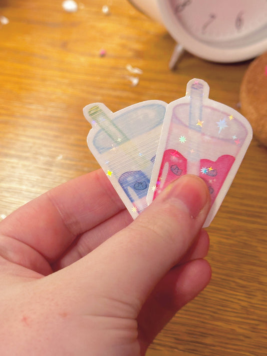 Cute & kawaii boba tea kitty holographic sticker | handmade with love 💕🧋