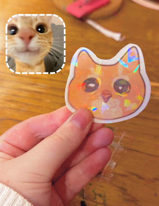 meme cat sticker set of 3 | handmade holographic meme cat stickers