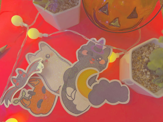cute & kawaii Halloween themed kitty stickers | bundle of 5 handmade holographic stickers! |