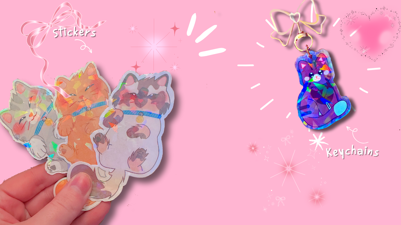 Shop our keychains, stickers & more!🌸