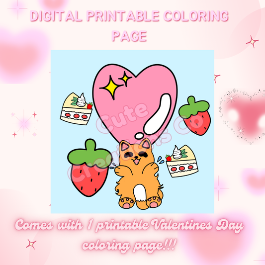 Cute Kawaii Valentines Day Kitty Coloring Page for Cat Lovers