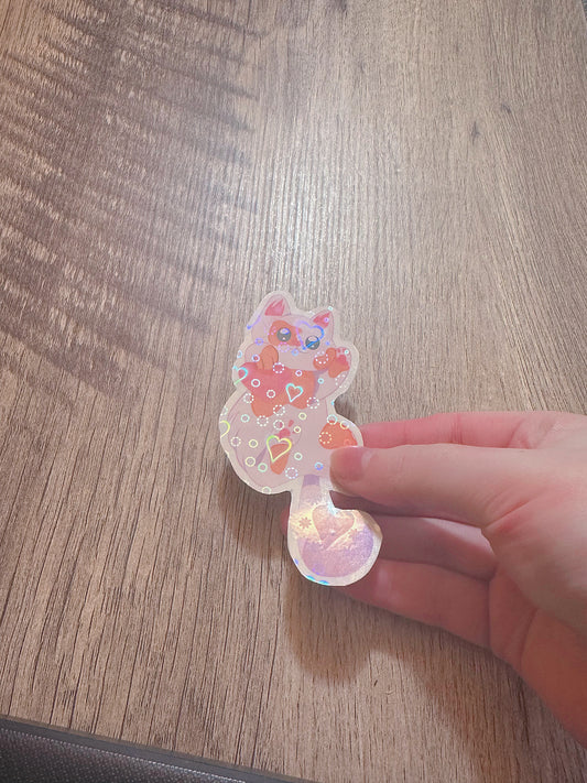 Waterproof Heart Kitty Holographic Sticker “HEARTZ”/ Valentines Day Sticker💌💗