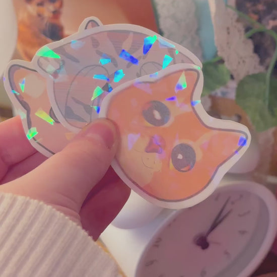 This is the cutest cat sticker you’ll find — perfect for cat lovers!🐈 It’s a holographic, handmade sticker set depicting 3 different cat memes from the internet!